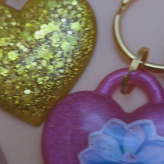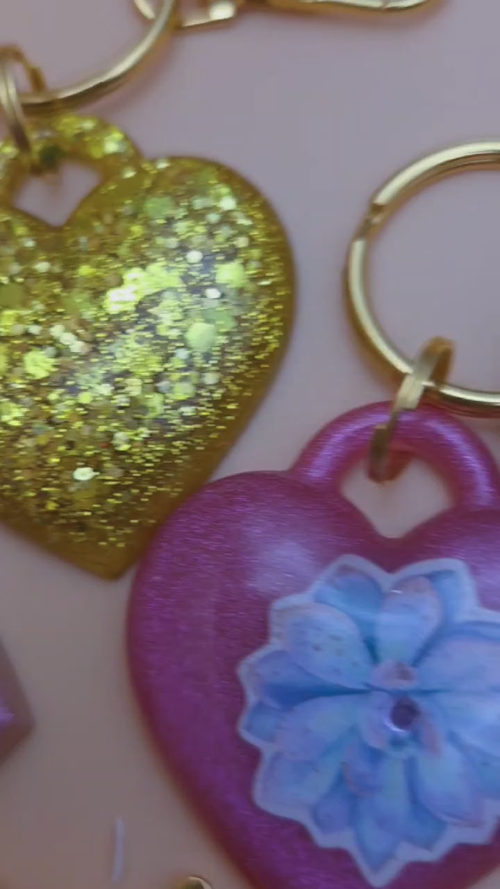7 chunky-style heart keychains in distinct styles. They're a cute addition to your keys, or your purse when used as an ornament.