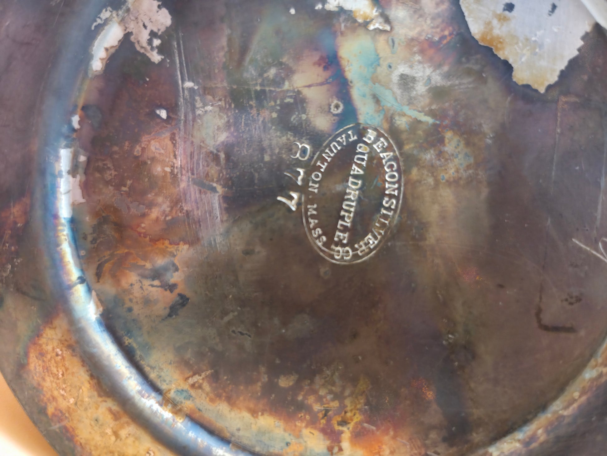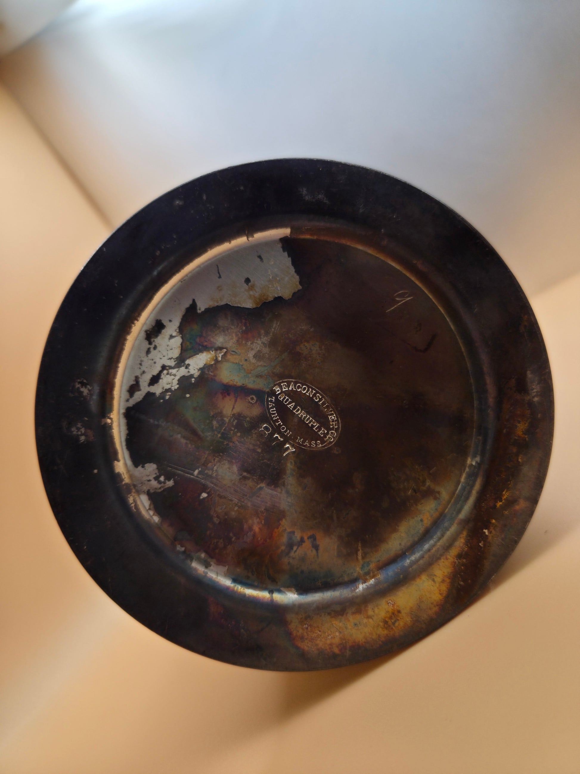 Material: Silver Quadruple Plate, unsure of base metal but likely copper.