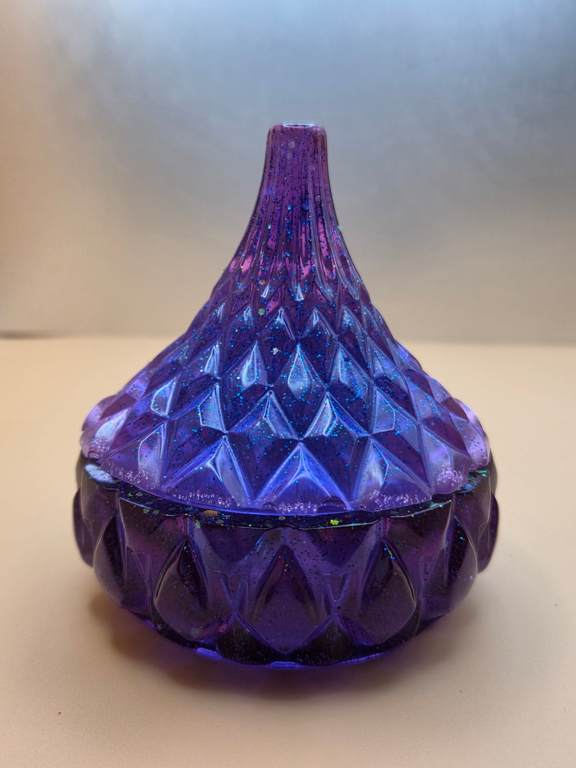 This deep purple and blue tear-drop jar features a little blue butterfly inside of the bottom.